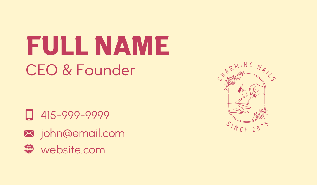 For instance, pinks, lavenders, or light blue will work well for the nail spa example above since they can convey coziness and cuteness better. Rounder designs and a more cartoonish art style can also fit better compared to sharper or minimalist styles.