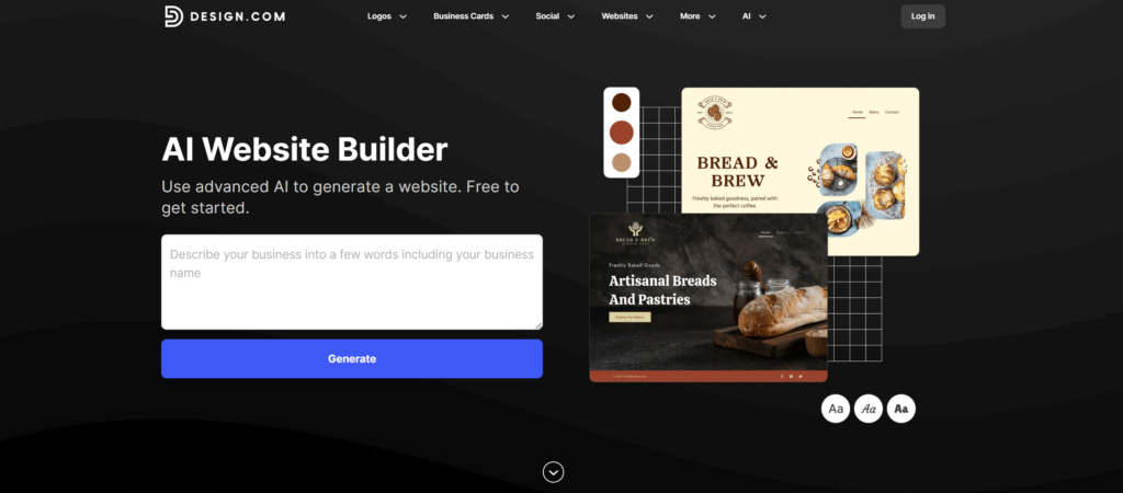 Many AI builders, like Design.com, offer free plans to get started. Paid plans usually range from $6 to $ 9 per month and include extra features such as custom domains, unlimited pages, e-commerce options, and full access to editing tools. This makes building a professional website much more affordable than hiring a designer or agency.