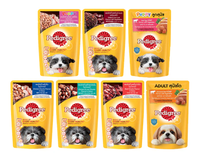 - Puppy food: This Pedigree logo stands out because it is specially formulated for clumsy little fluffballs who need extra nutrients to grow strong and healthy.